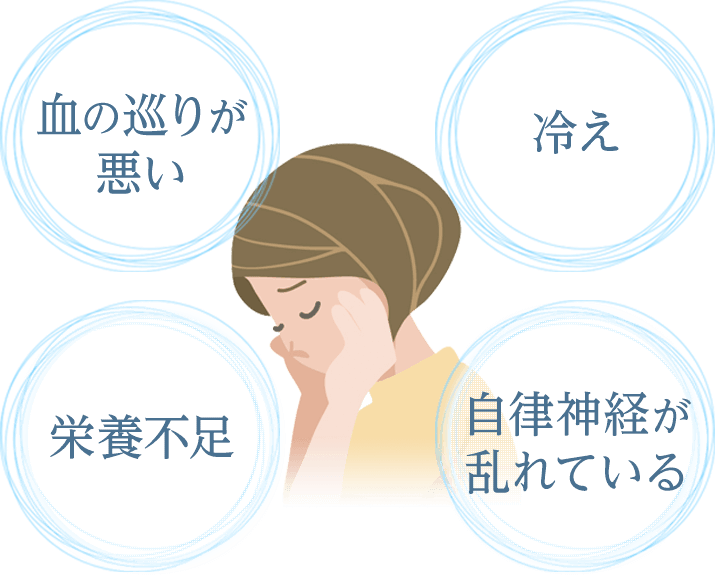 ストレスは自律神経を介して体のコントロールを乱し、血液の流れを悪くしてしまう要因となり、結果身体の機能が十分に機能しづらくなります。