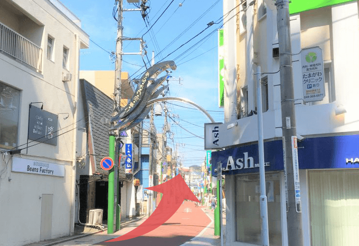 4.階段を下りたら、美容室ash二俣川北口店の横、左手の道へ進みます。