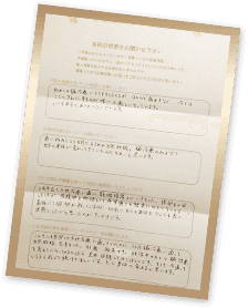 に記入をして頂き、カウンセリングを行います。