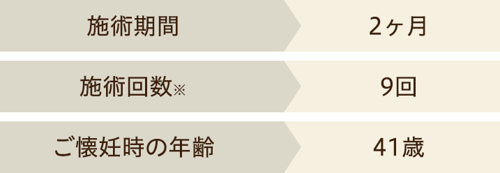 こんなにも苦労して病院へ通っていたのに、2か月鍼灸施術を行い自然妊娠できました。41歳 初産です。