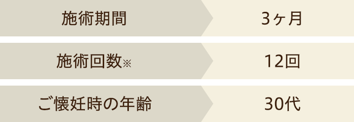 なお、3年上手くいかず次ダメだったら体外という時に2回の施術で陽性反応があった事例もございます。